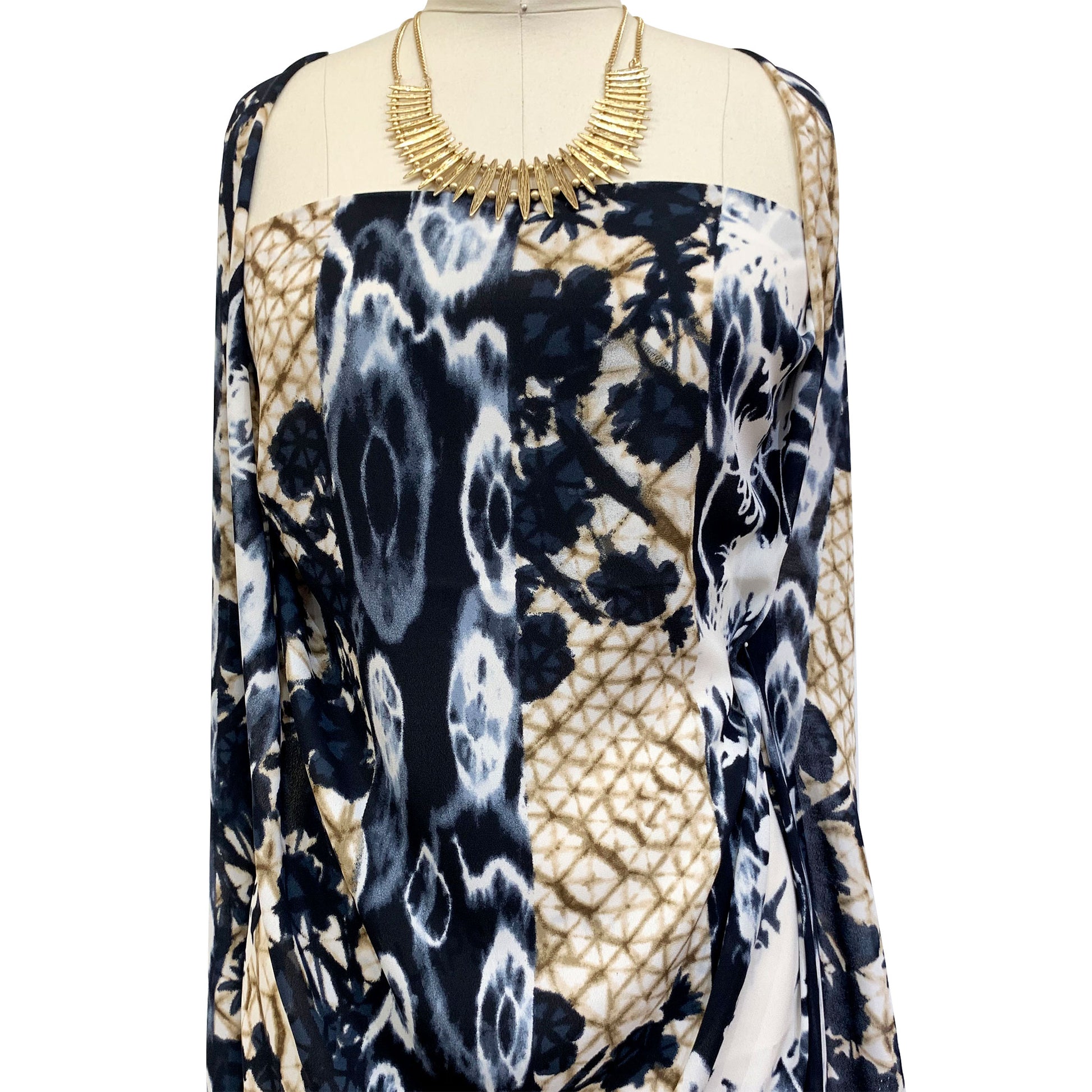 DP-1416-504-BLACK-NEUTRAL - PRINTED TIE DYE WOOL DOBBY 100% POLYESTER