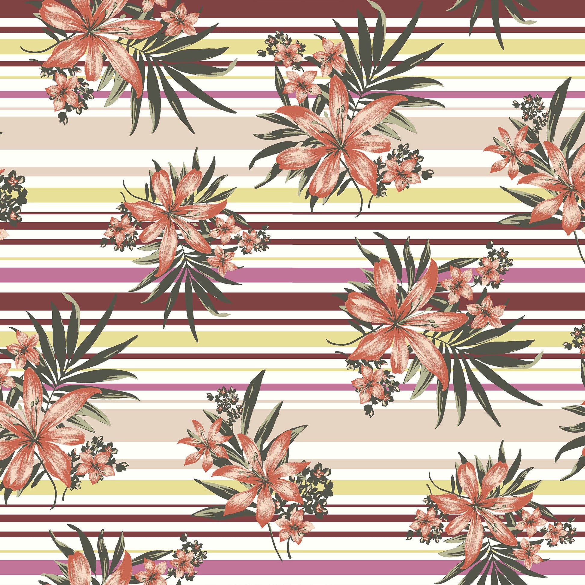 Pattern: FLORAL/ LARGE FLOWERS/ FLORAL TROPICAL/FLORA W STRIPES/ HORIZONTAL STRIPE/ TROPICAL