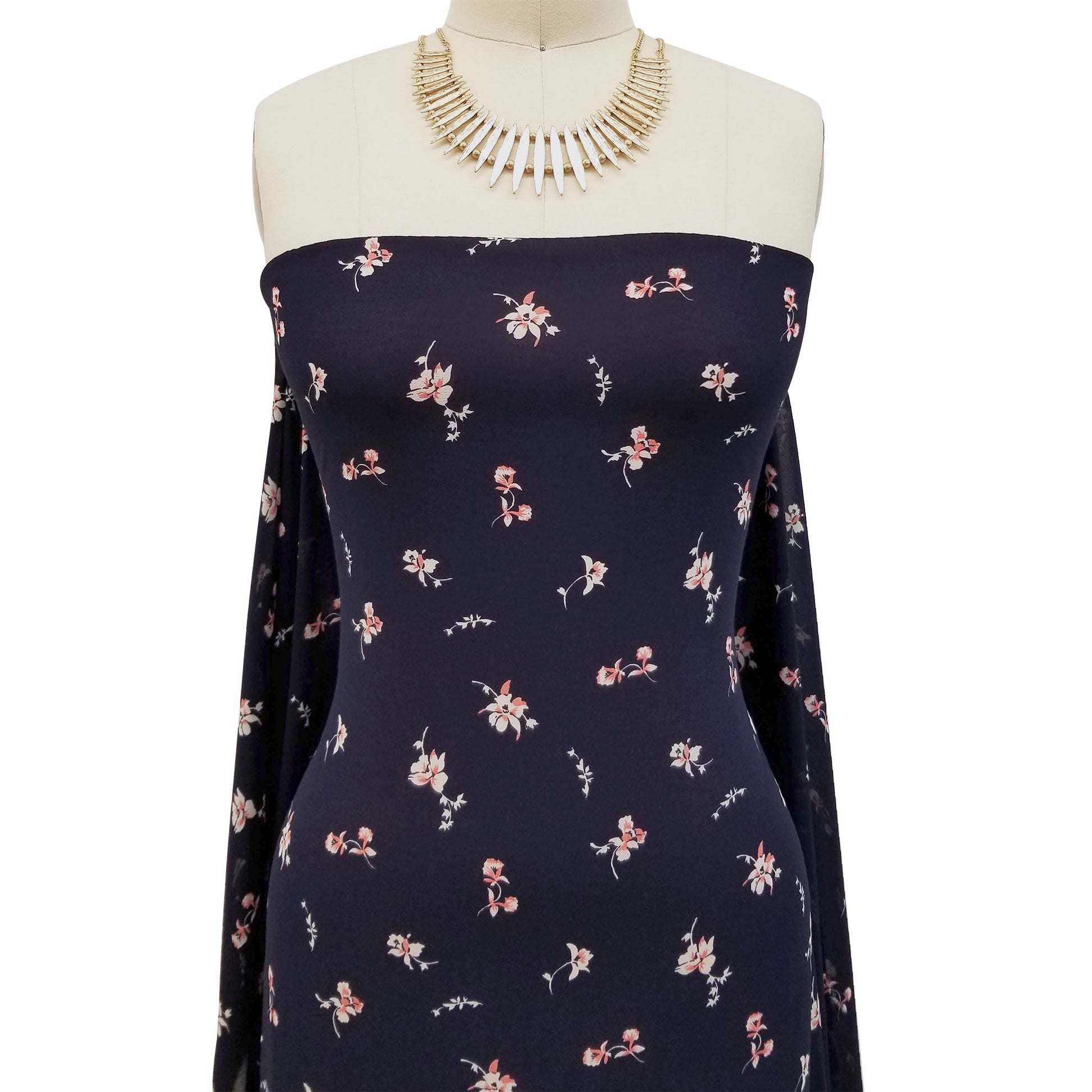 P-10008-502-NAVY-CORAL - PRINTED 100% POLY CHELSEA CHIFFON