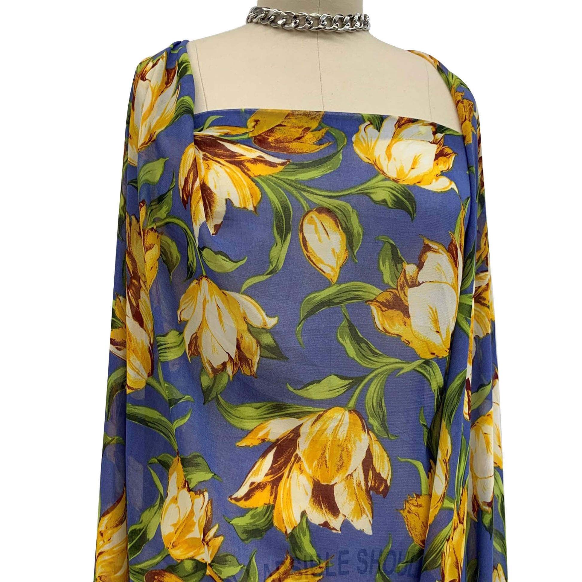 P-1018-501-WEDGEWOOD-MARIGOLD - PRINTED 100% POLYESTER HI MULTI CHIFFON WASH