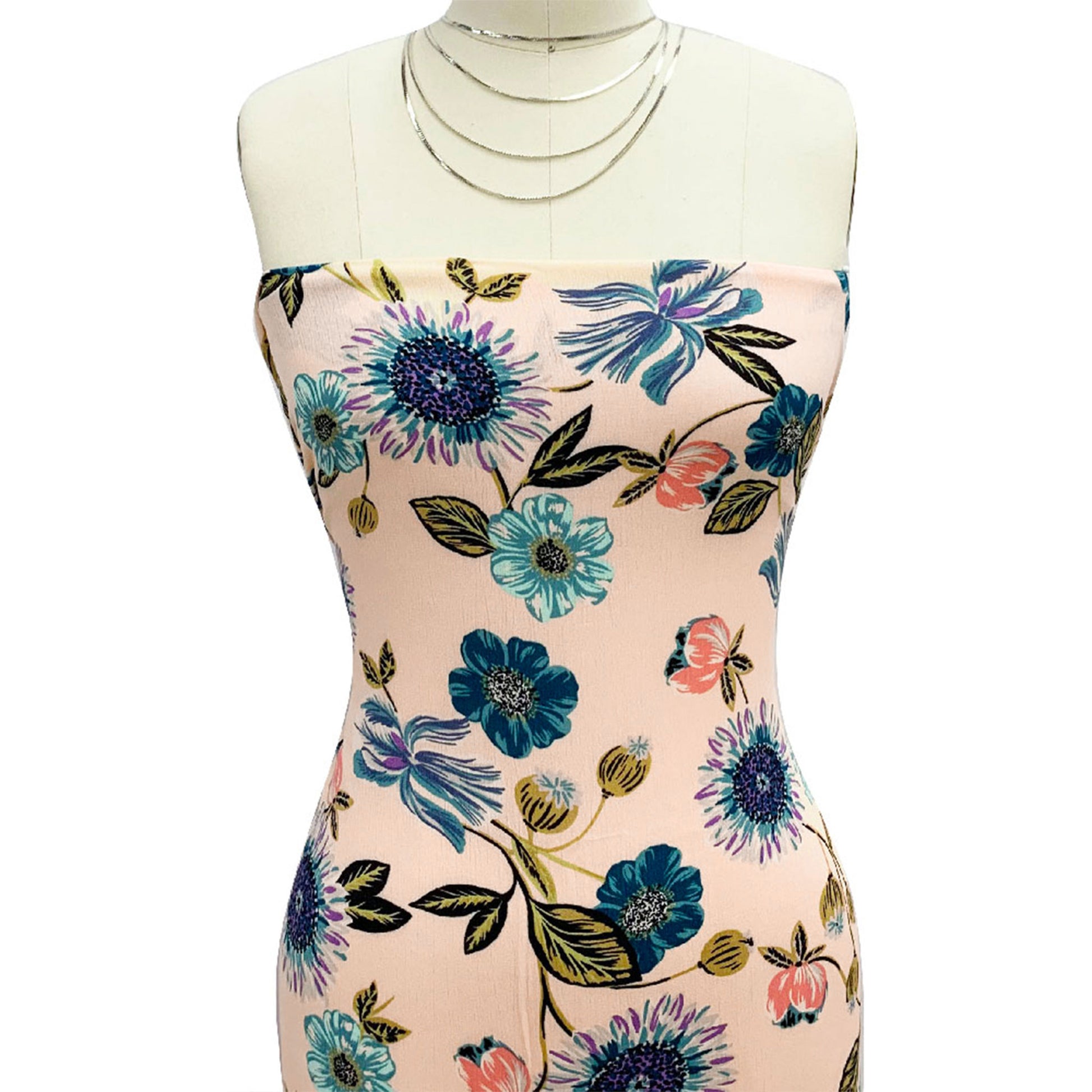 P-1790-636-BISQUE-TURQUOISE PRINTED CREPON 100% RAYON CREPON