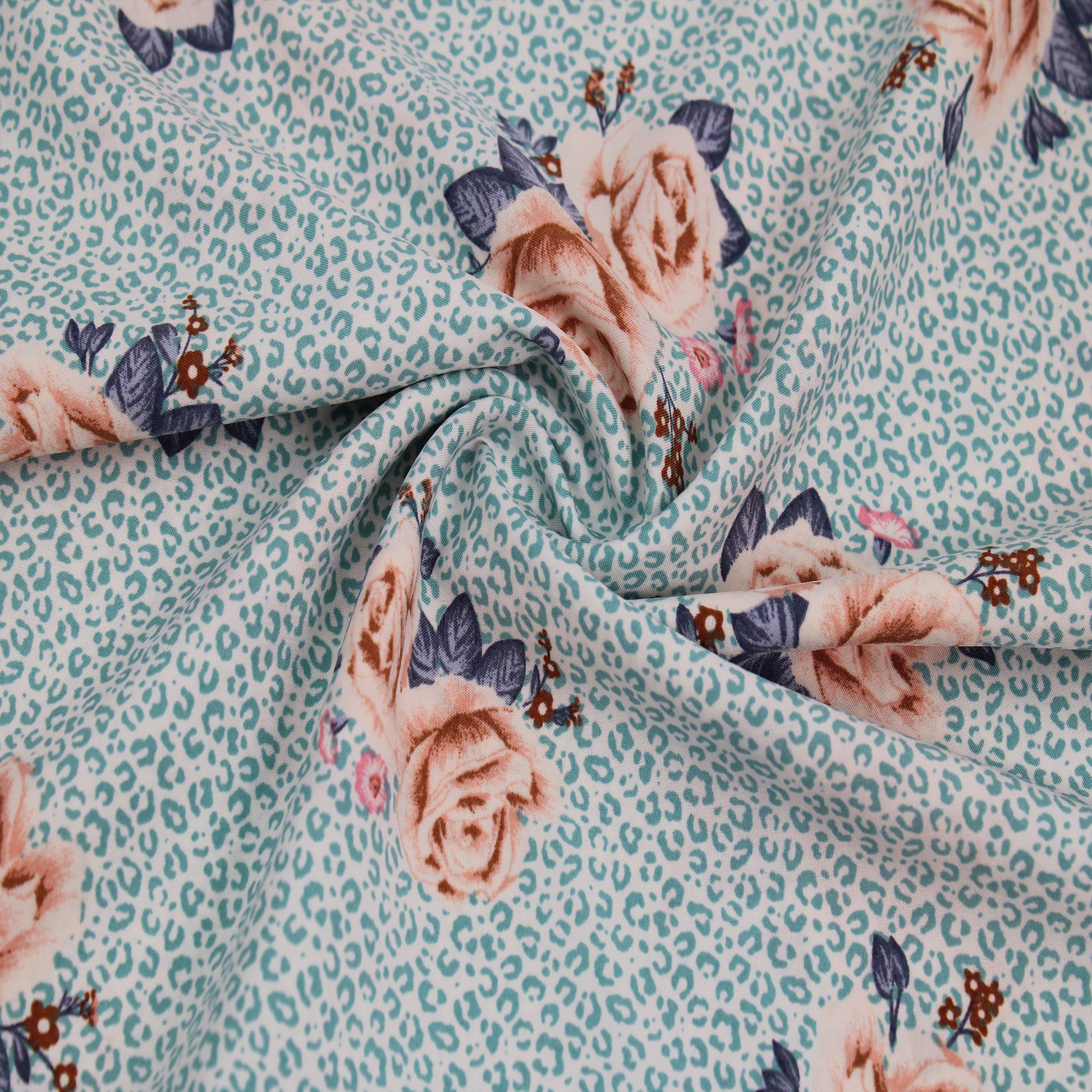 P-1921-793-BLUE-HAZE-MOCHA PRINTED SILEX 90% POLYESTER 10% SPANDEX