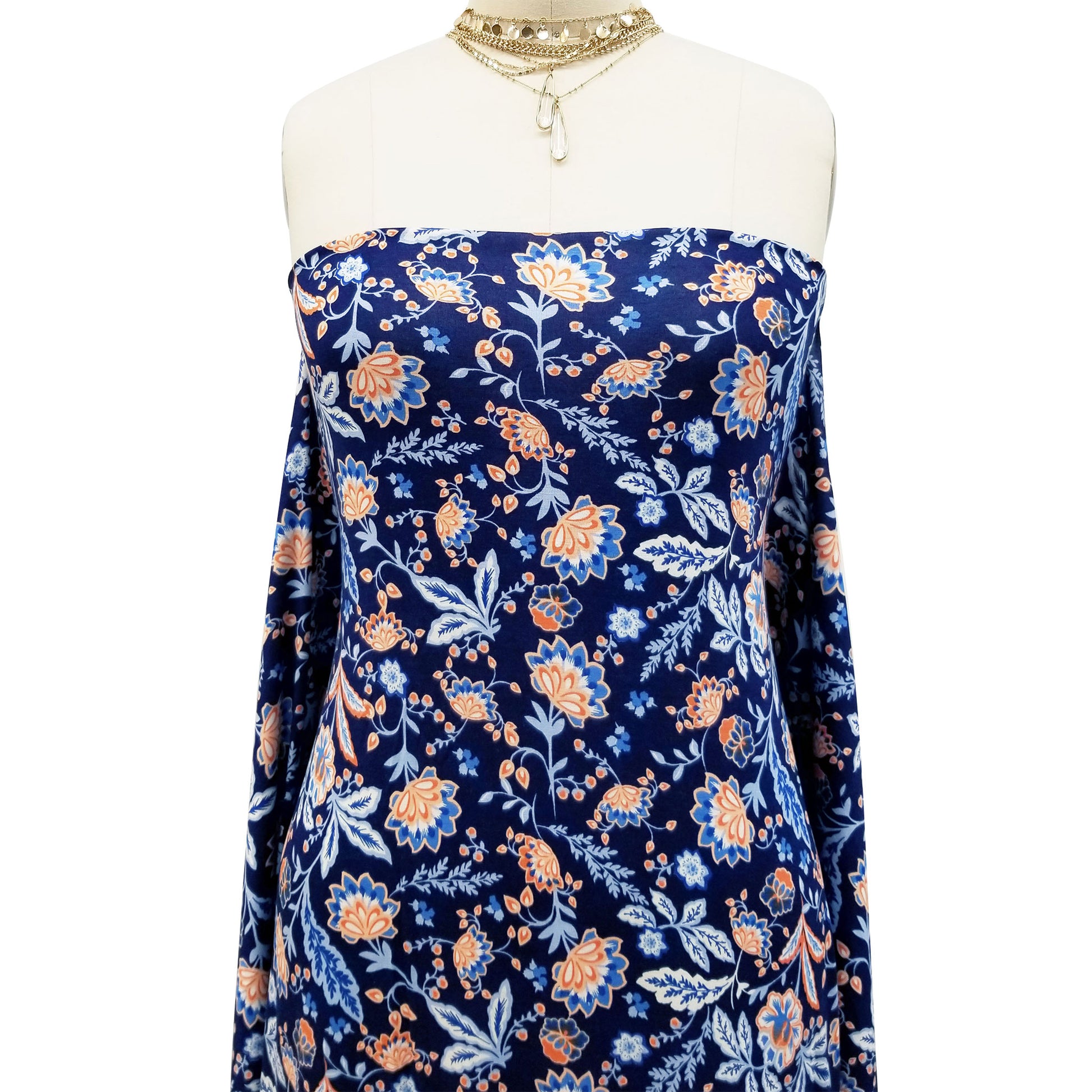 P-43-HVY-RSJ-NAVY-PEACH - PRINT RSJ 95% RAYON 5% SPANDEX JERSEY