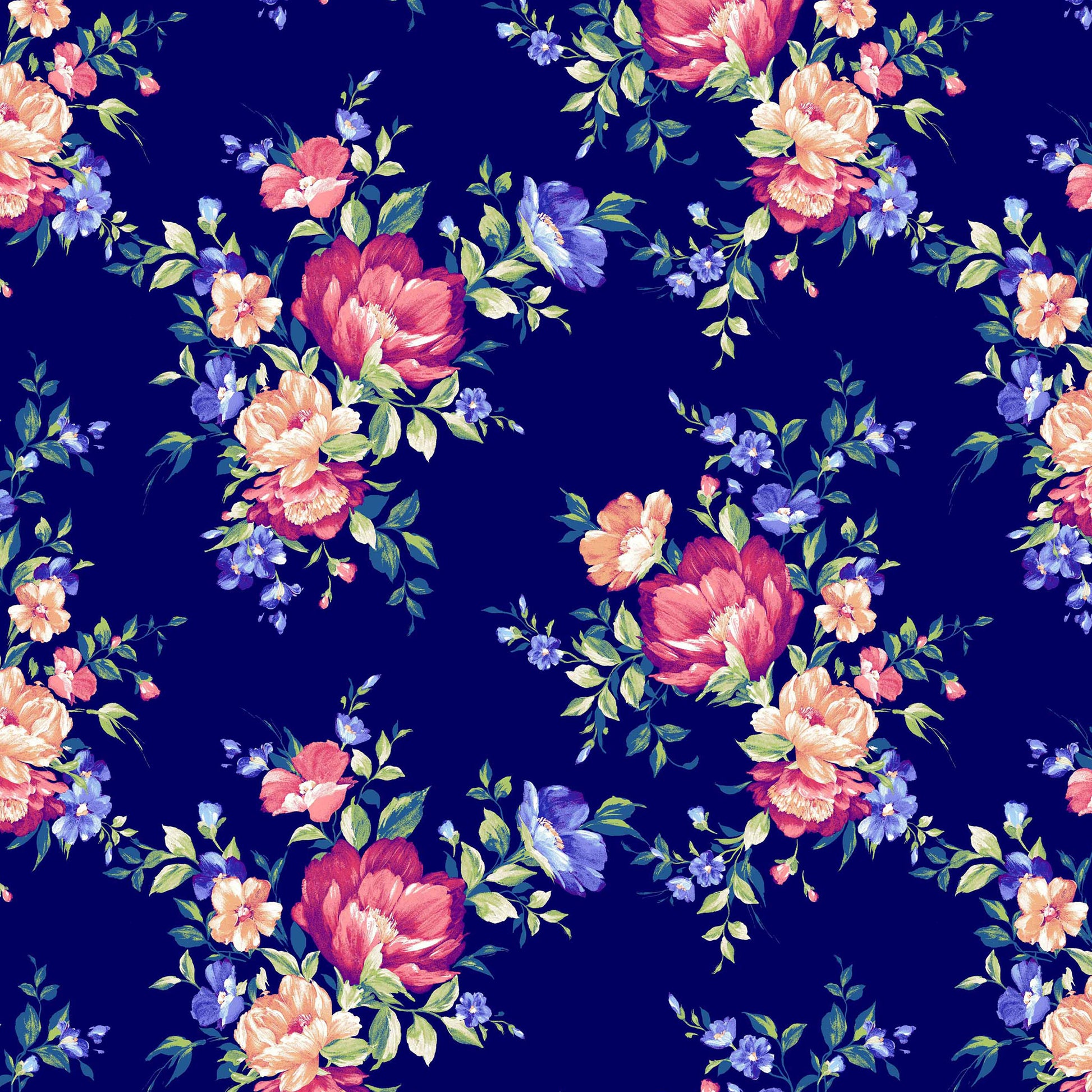 P-630-586-NAVY-CORAL - PRINTED CREPE CHIFFON 97% POLY 3% SPANDEX